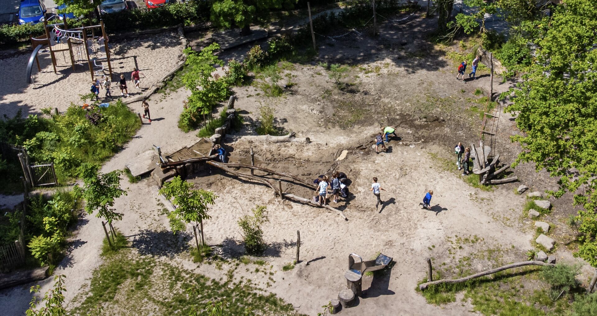 Het Gele Park zelf is een beetje een ‘village’. Ik heb vier vrijwillige tuinmedewerkers die hier op maandagmorgen koffiedrinken en werkoverleg hebben. Daarna gaan ze aan de slag op ons flinke natuurlijk speelterrein. Ze zijn trots, zetten zich bijvoorbeeld extra in voor de open dag. Het ‘village’ gevoel zie je ook terug in de moestuin die we hebben aangelegd. De buurman uit de straat kwam naar me toe en zei: ‘Wat doen jullie hier? Zal ik helpen met het onderhouden?’ Deze man is nu ook onderdeel van Het Gele Park. De kinderen mogen er plantjes in zetten. Dat onderdeel zijn van, zie je ook weer terug in onze centrale hal. Daar is de bibliotheek waar tien oma’s en ouders bij helpen.