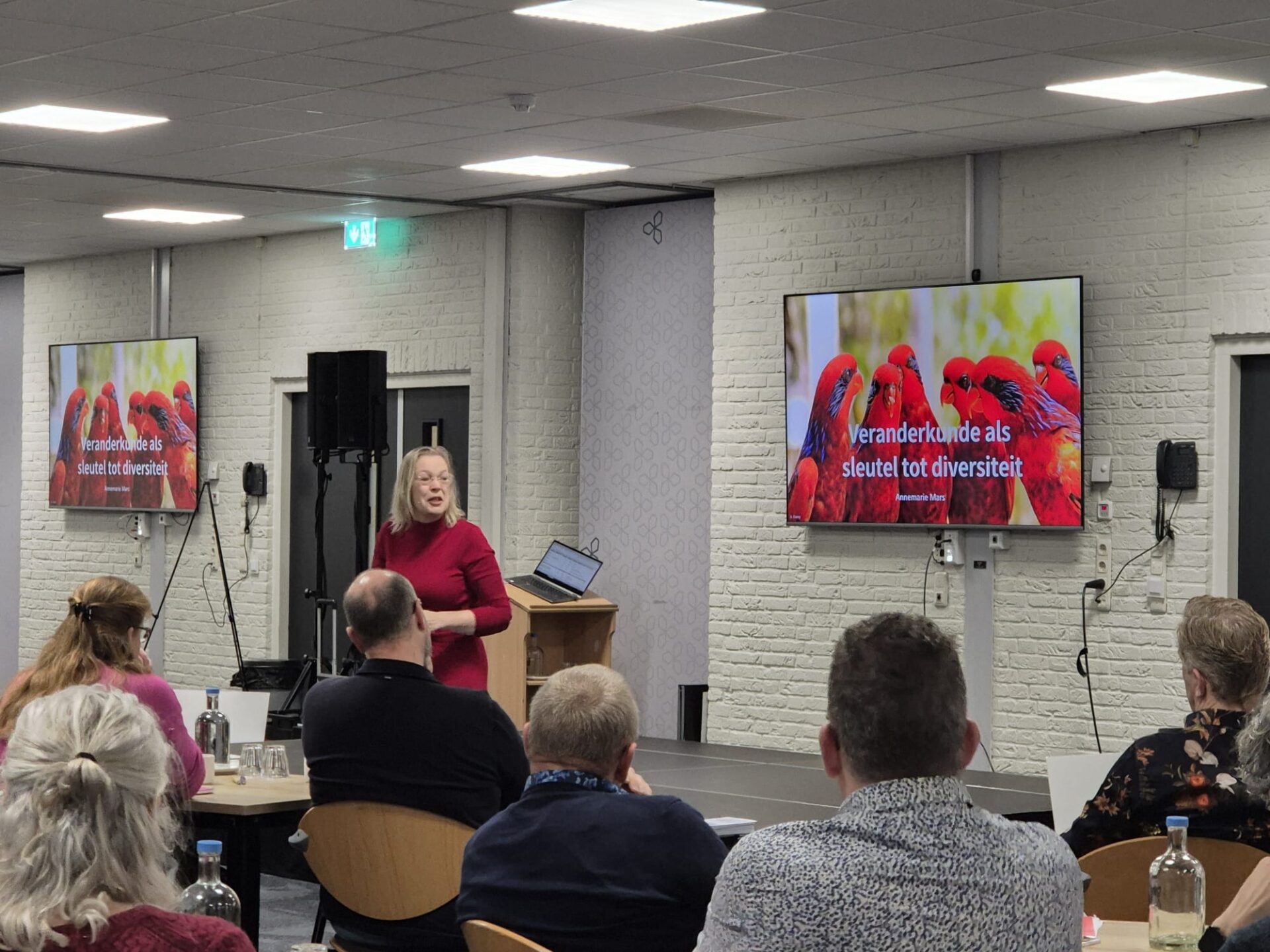 Op donderdagochtend 14 november volgden de leidinggevenden een workshop van Annemarie Mars, waarin inhoud en humor elkaar in hoog tempo afwisselden. Aan de hand van herkenbare voorbeelden liet zij zien hoe je als leidinggevende in complexe samenwerkingsverbanden regie houdt, gedrag beter begrijpt en dicht bij de bedoeling blijft. De workshop gaf deelnemers praktische handvatten én luchtige inzichten om lastige situaties met meer rust en stevigheid tegemoet te treden.