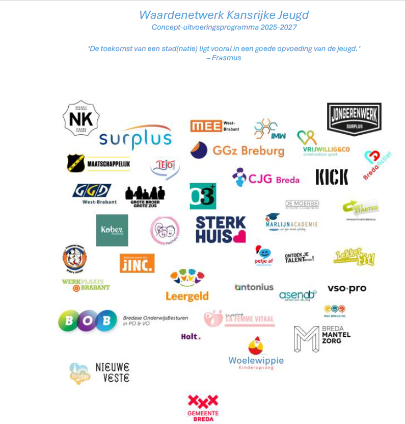 Alle stakeholders die bijdragen aan de ontwikkeling van kinderen/jongeren. Zie de afbeelding hieronder. Van kinderopvang, onderwijs (PO en VO), vervolgonderwijs, jeugdhulp CJG, ketenpartners GGD, GGz en zorgverleners zoals surplus, MEE etc, etc. In 2 jaar is het plan focus 2040 gevormd om gezamenlijk zorg te dragen voor afgesproken doelen om alle jongeren te helpen: opgroeien, ontwikkelen en nazorg. Ze kunnen nu al starten met een uitvoeringsagenda 2025-2027. Ze kijken daarbij met name naar de sociale en pedagogische basis vanuit de 4 leefwerelden: gezin, omgeving, school en digitaal.